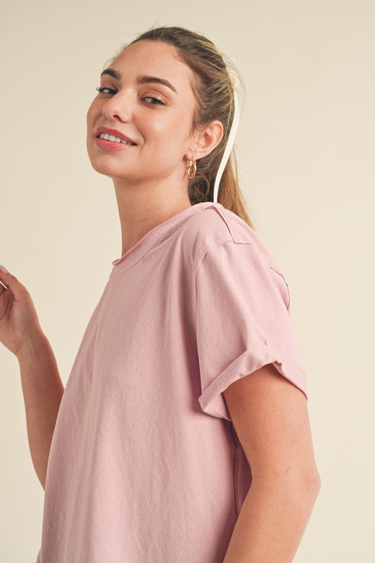 Aemi + Co Exposed Seam Round Neck Short Sleeve T-Shirt