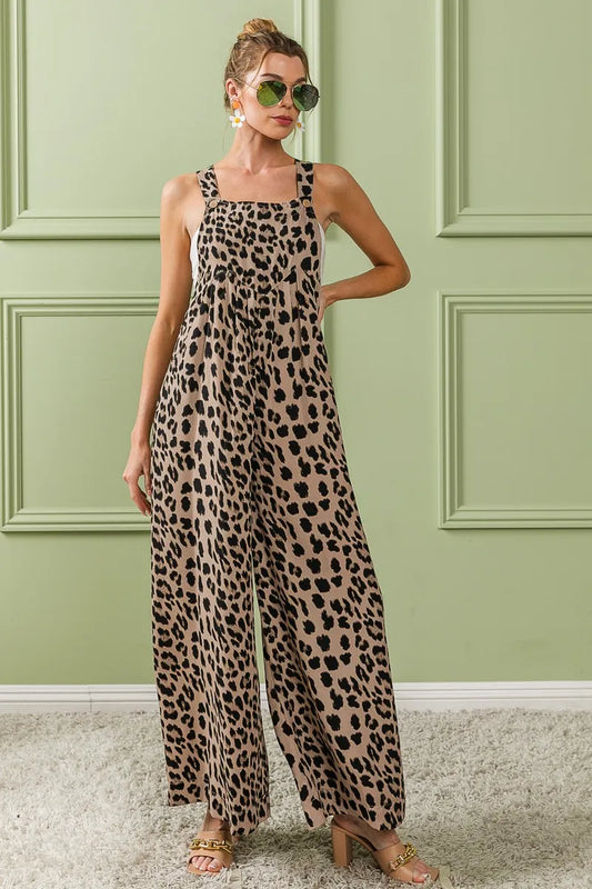 Sold outBiBi Leopard Print Wide Leg Overalls