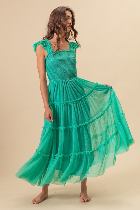 Sold outBiBi Frill Mesh Tiered Midi Dress