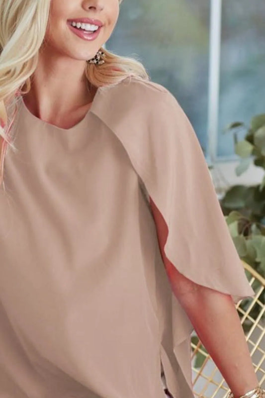 BiBi Triblend V Neck Top with Shoulder Shrring Detail