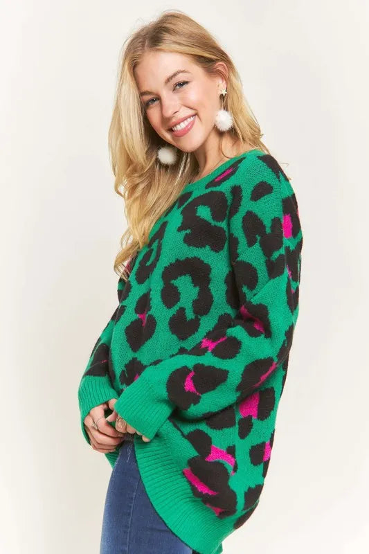 BiBi Tie Dye Terry Top with Leopard Puff Sleeves