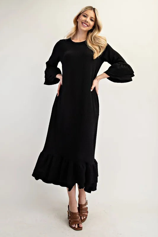 Celeste Full Size Textured Ruffle Hem Modest Dress Plus Size