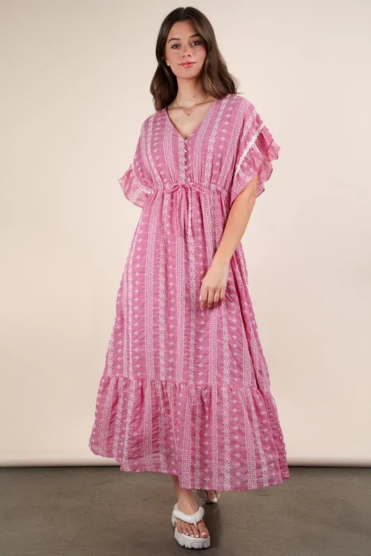 MABLE Eyelet Lace Maxi Dress with Side Strap Details