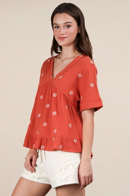 Davi & Dani Crinckled Texture Fabric Round Neck Swing Top