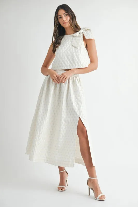 MABLE Taffeta Polka Dot Shoulder Ribbon Top and Skirt Set