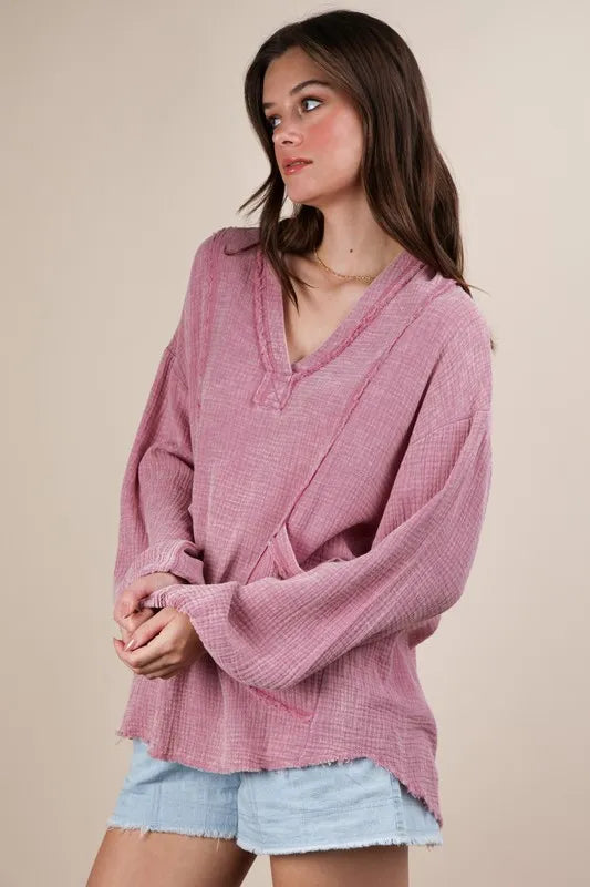 VERY J Plus Size Washed Cotton Gauze Oversized Top