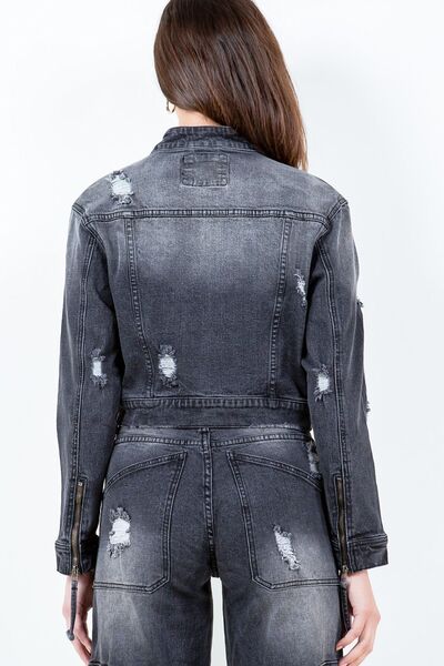 Umgee Full Size Distressed Detail Raw Hem Button Up Jacket Plus Size