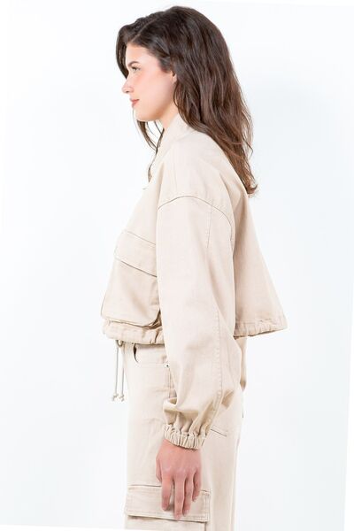 American Bazi Full Size Drawstring Hem Cargo Pocket Cropped Worker Jacket Plus Size