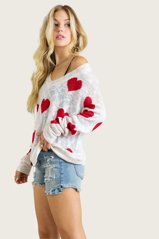 ADORA Full Size Heart V-Neck Knit Top Plus Size