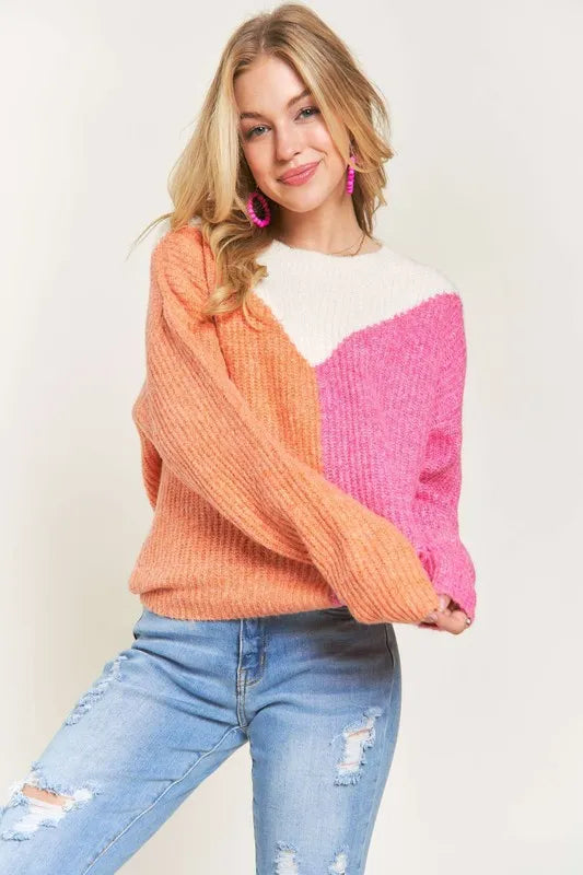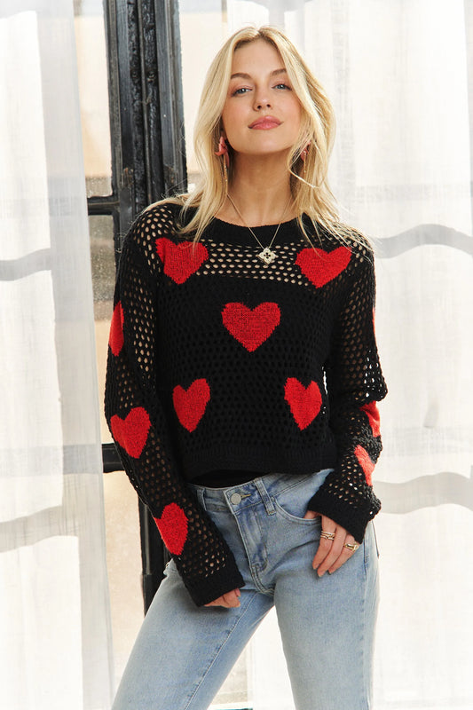 ADORA Full Size Lovely Heart Sweater Top Plus Size
