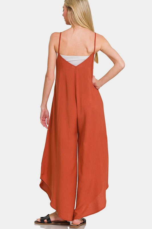 Zenana Spaghetti Strap Wide Leg Overalls with Pockets