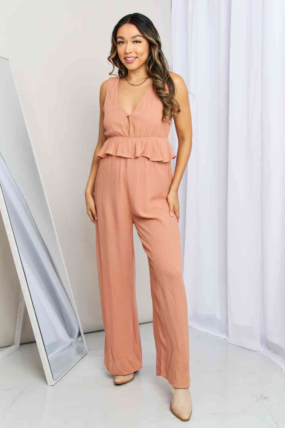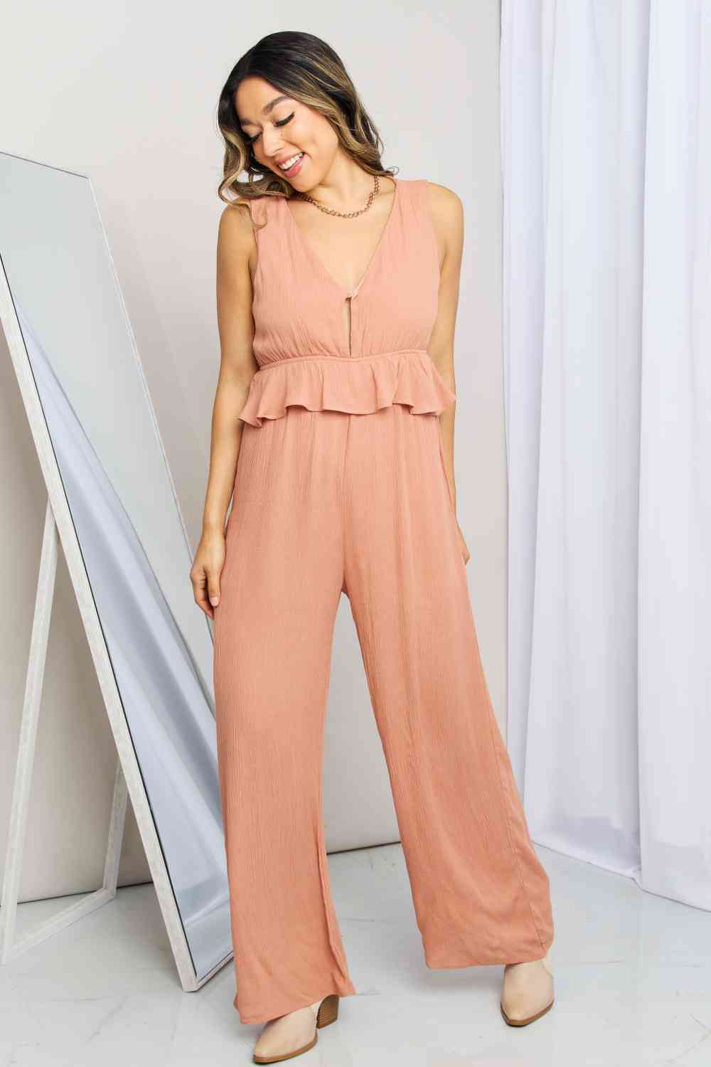 Gilli Sleeveless Wide Leg Peplum Jumpsuit
