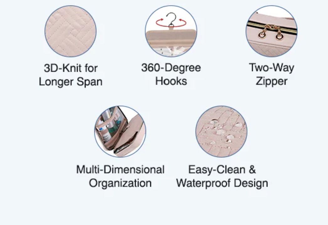 - CONVENIENCE & COMFY: The bag is expandable, providing additional space when needed, and can be conveniently hung with its metal hook.